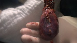The above images show a case of a giant hematometra in a case of cervical stenosis and mucinous endometrial cancer. See how the uterus shrinks after its contents have been safely evacuated. There was no difficulty removing it afterwards.