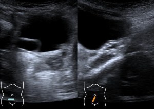 - Bladder (dilation, wall thickness, or a keyhole sign).