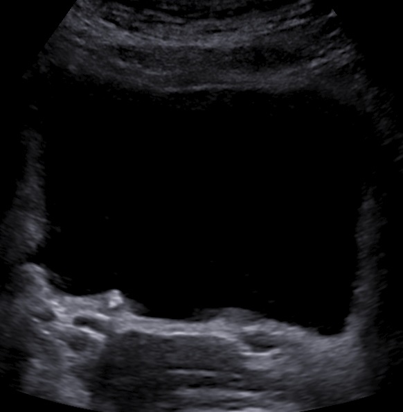 The abdominal ultrasound examination began with an intact pregnancy and a mild maternal hydronephrosis on the right side. The transvaginal sonography showed a distal ureteral calculus with dilatation of the right distal ureter.