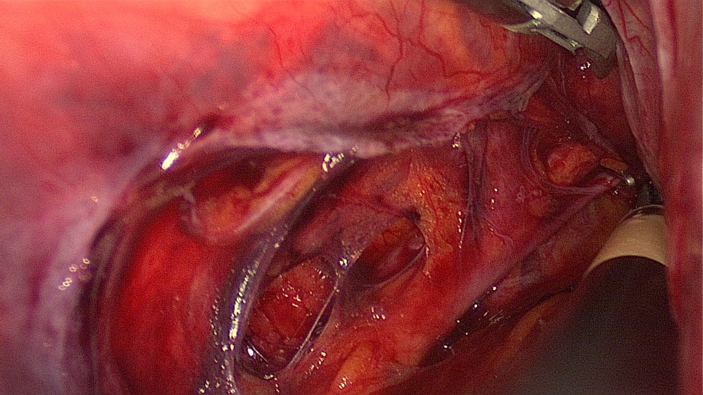 In case the transperitoneal visualization of this specific area is not accurately possible, a bigger opening of the retroperitoneal space may be made, like on this patient’s left side.